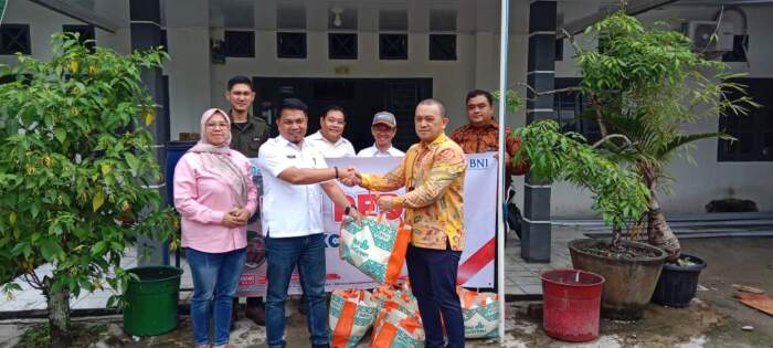 Melalui program BNI Peduli Bencana, Kantor Cabang Baturaja menyerahkan 100 paket makan ringan cepat saji kepada Kades Tanjung Baru, Subri Bustan ST.