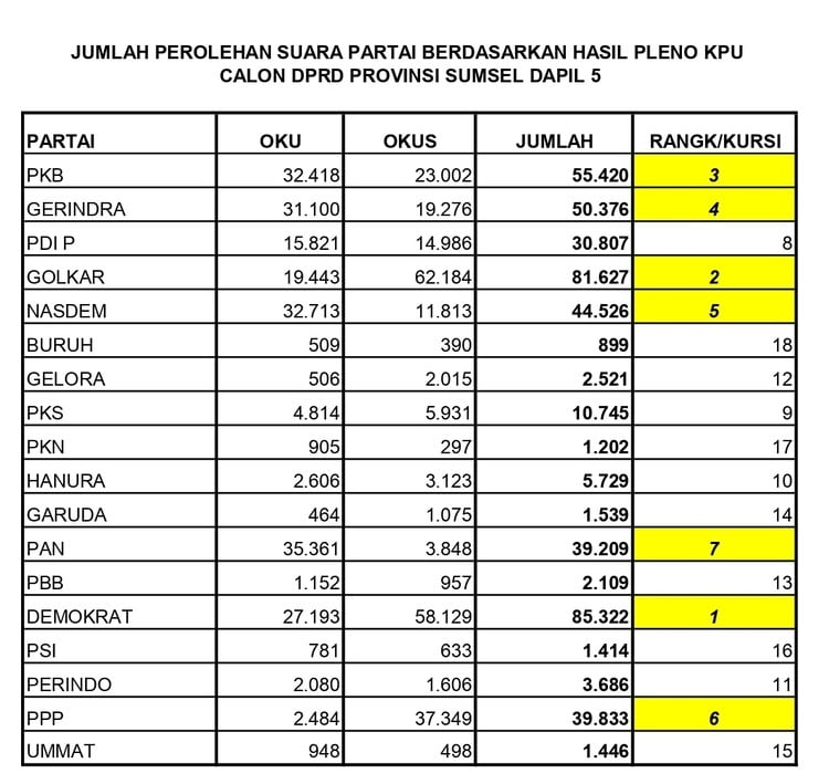 Berdasarkan ringkasan hasil Rekapituasi Rapat Pleno Terbuka KPU Kabupaten Ogan Komering Ulu dan OKU Selatan beredar di grup WA bermunculan nama baru.